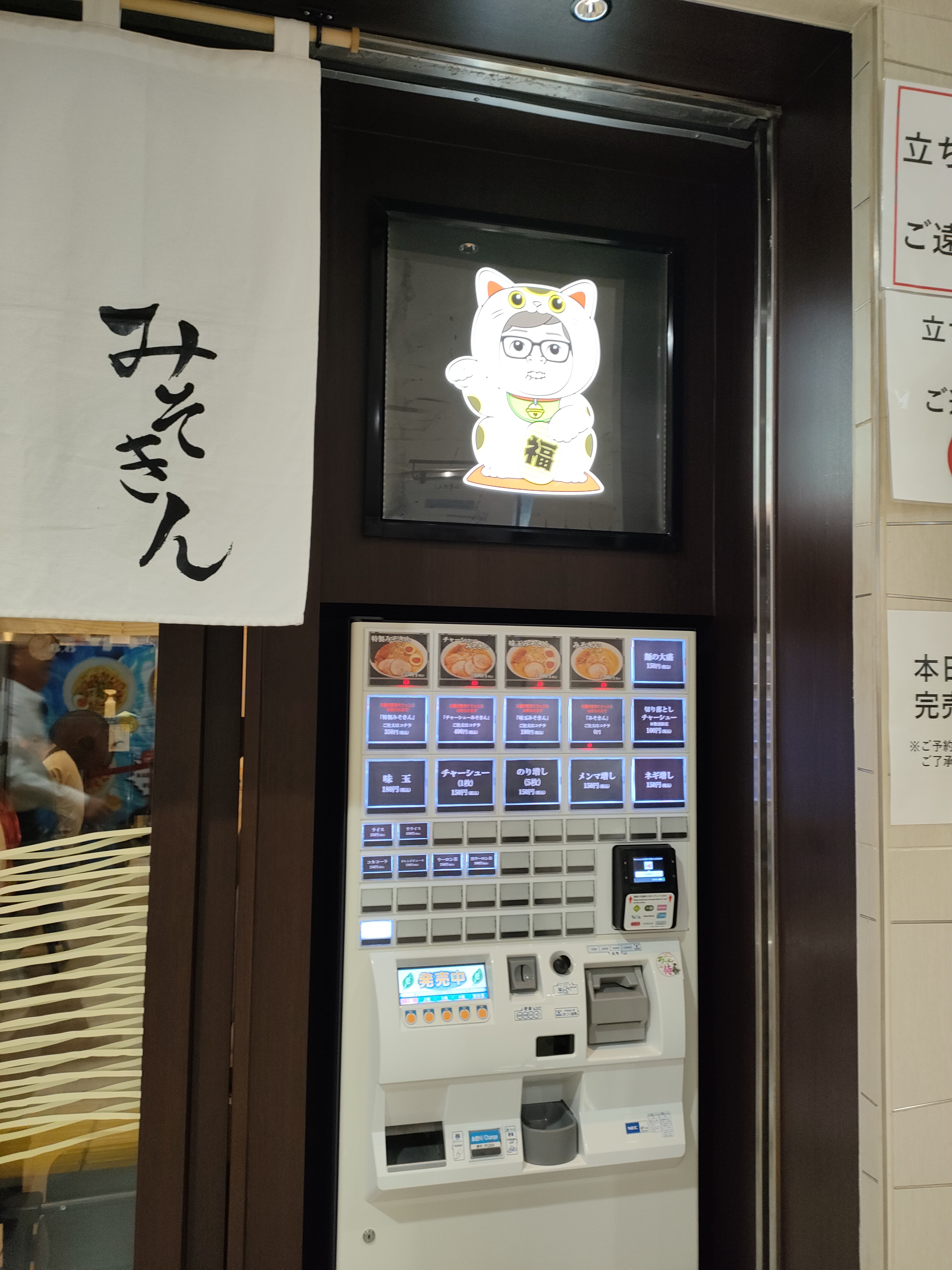最後に「③みそきん」店舗入り口で食券を購入し、入店します。